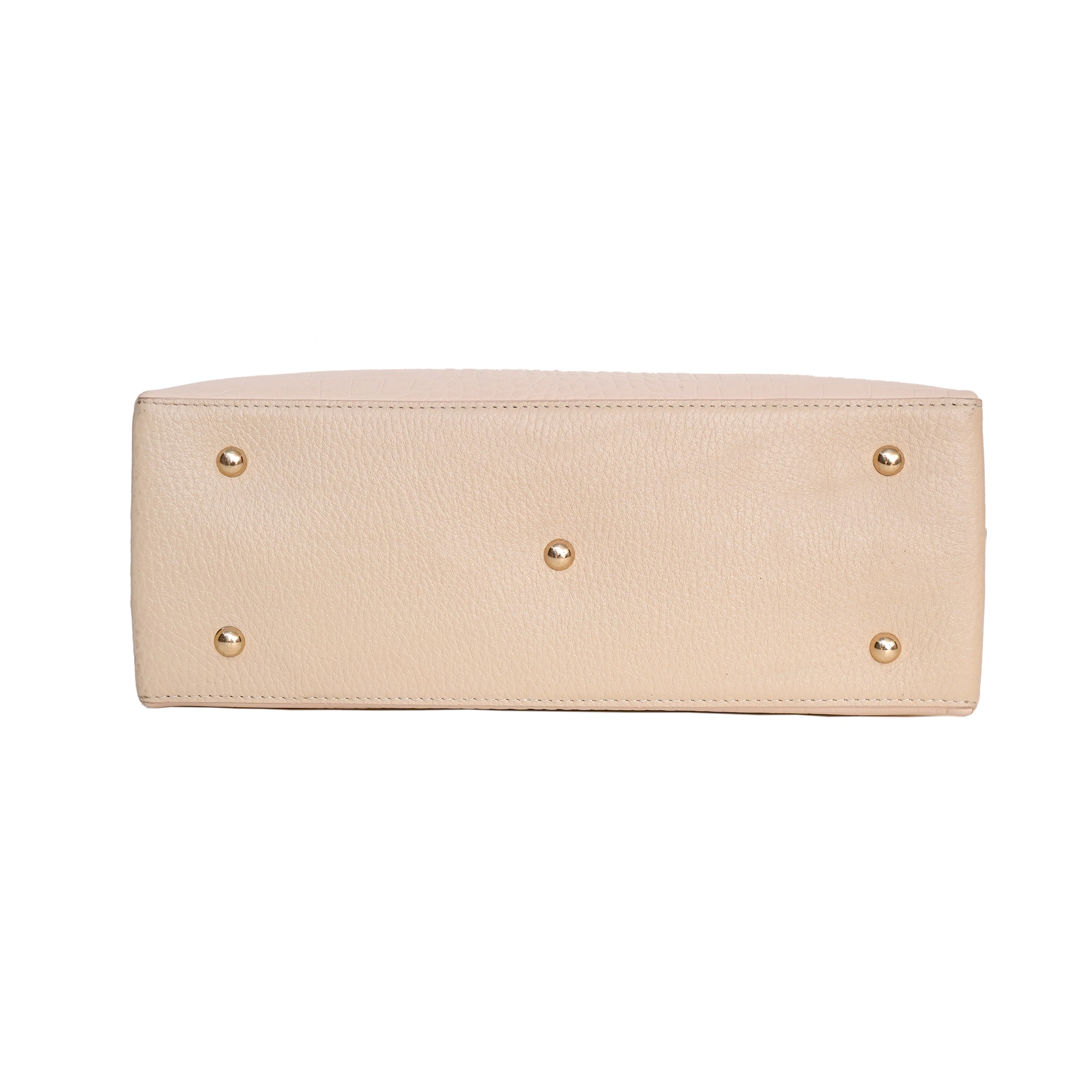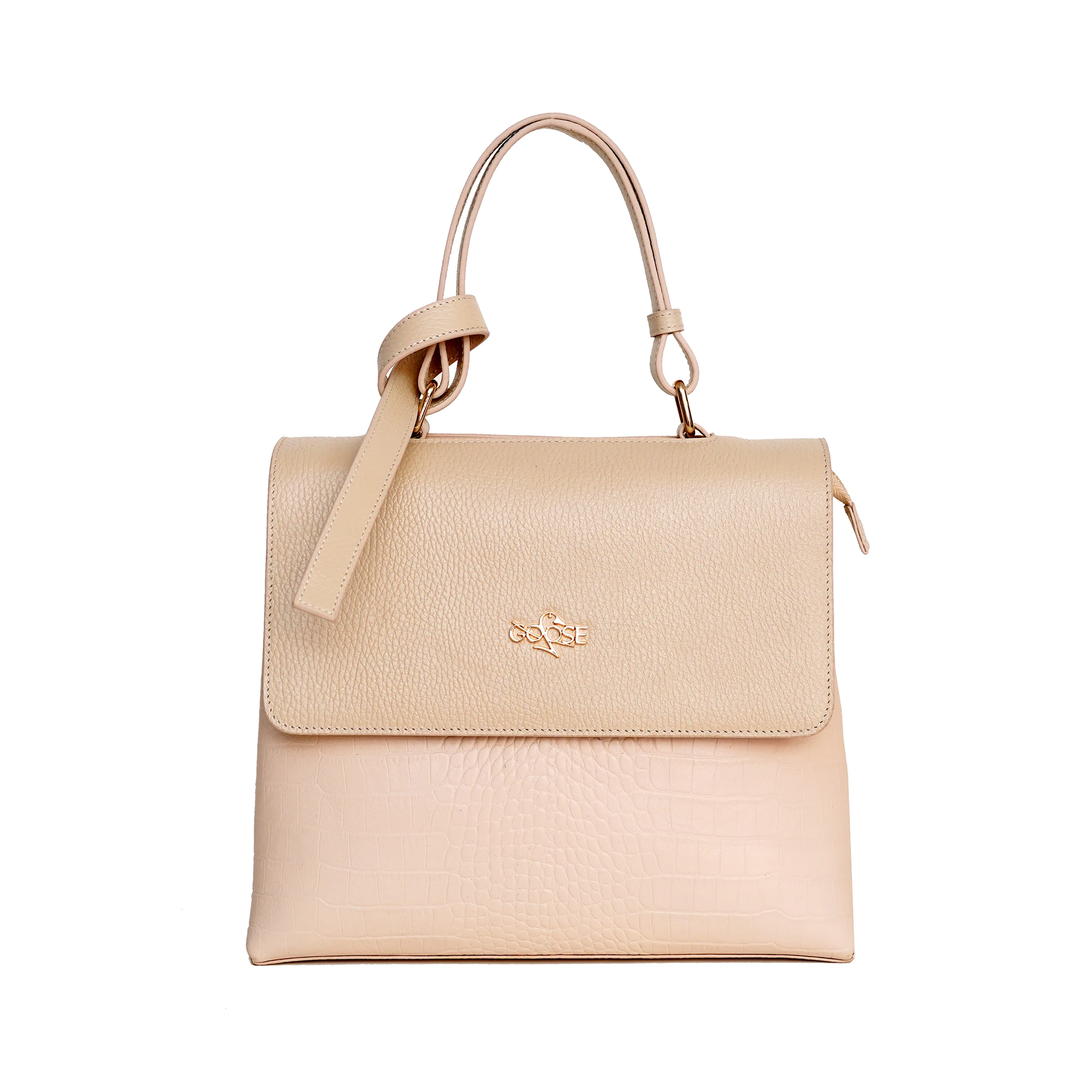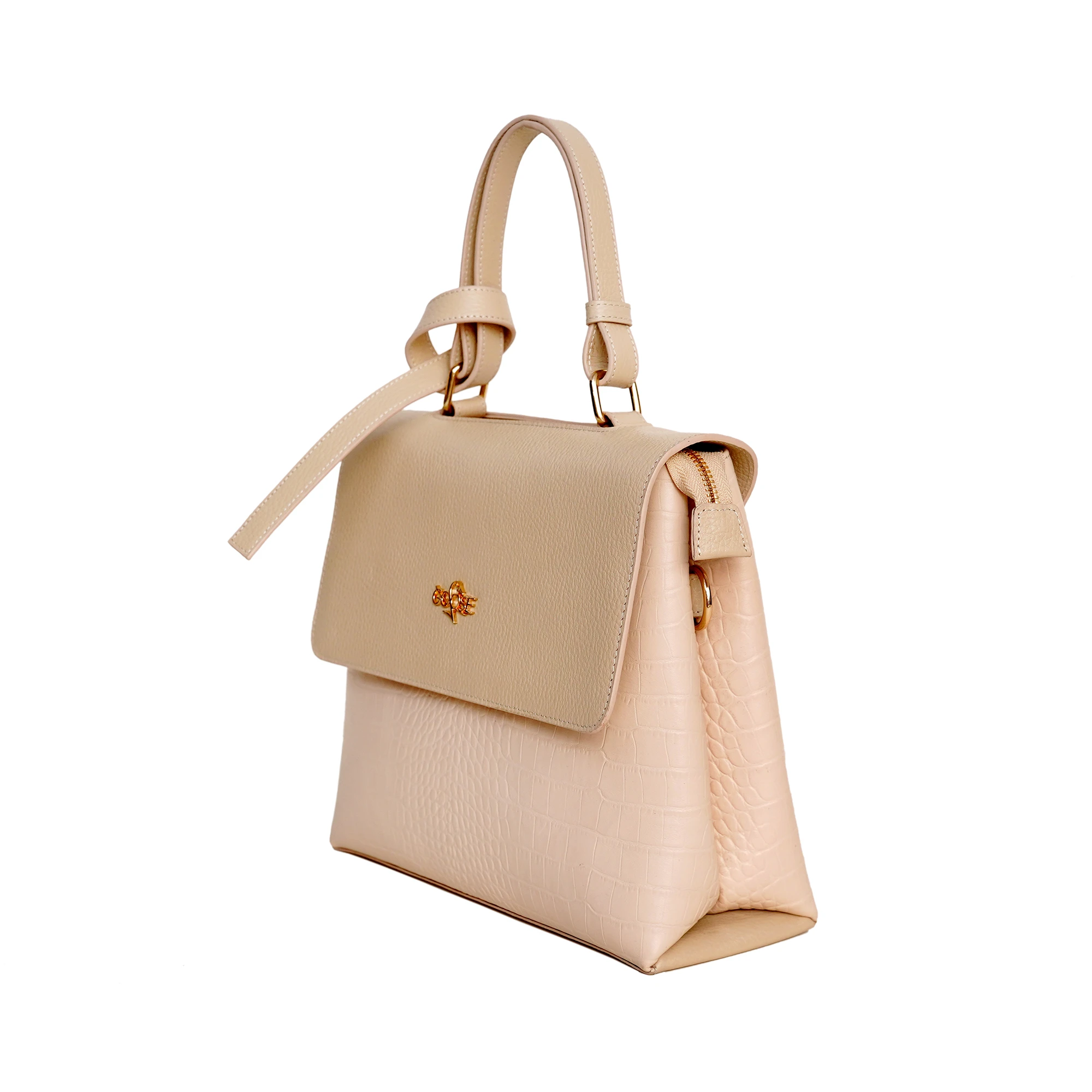 Experience luxury with this exquisite leather women’s bag, made from supple, high-quality leather. The bag is designed to stand out with its eye-catching handle. Its structured two part shape provides ample space for all your essentials, with a beautifully lined interior and flap added security. Whether you’re attending a formal event or an upscale dinner, this bag is the perfect complement to a polished look.